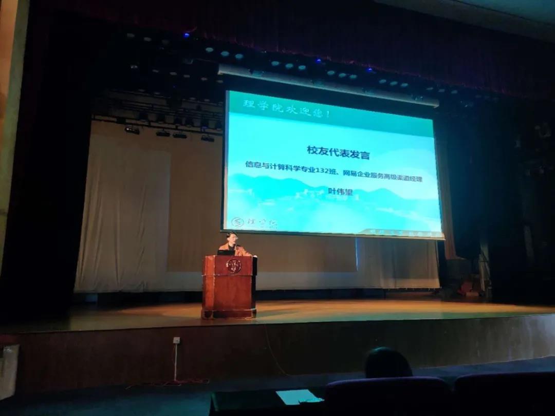 在一片掌声中,理学/大数据学院17届毕业生,信计132班叶伟望,现任网易企业服务高级渠道经理作为校友代表发言。大学是我们绽放青春最好的舞台,因此他向新生讲述了大学生活应该如何度过,如何在这个舞台上展现自我。叶伟望鼓励大家提高自我认知能力、多参加社交活动、在学好专业知识的前提下培养有意义的爱好等。