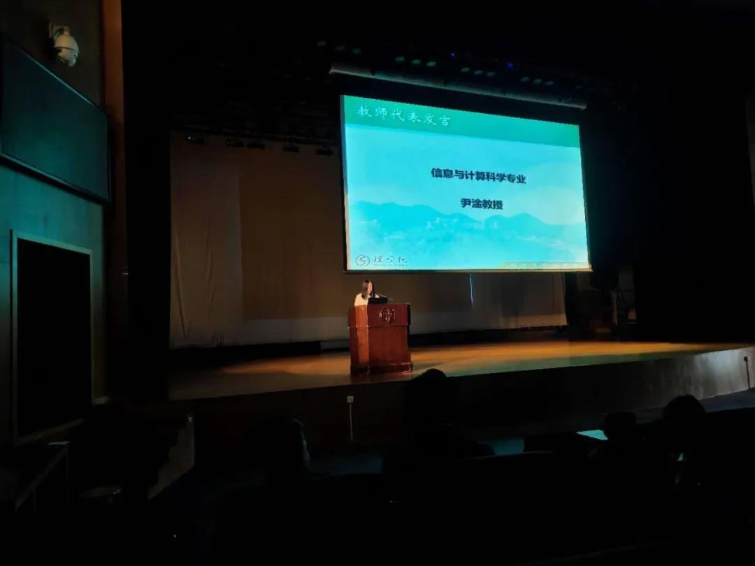 接下来教师代表尹淦教授代表av影片 全体教师对新生接下来的学习生活提出了要求,建议大家培养自主学习、独立思考、团队协作等能力,并且表示磨砺是必然存在的,鼓励新生在学习中要不惧困难,勇往直前。