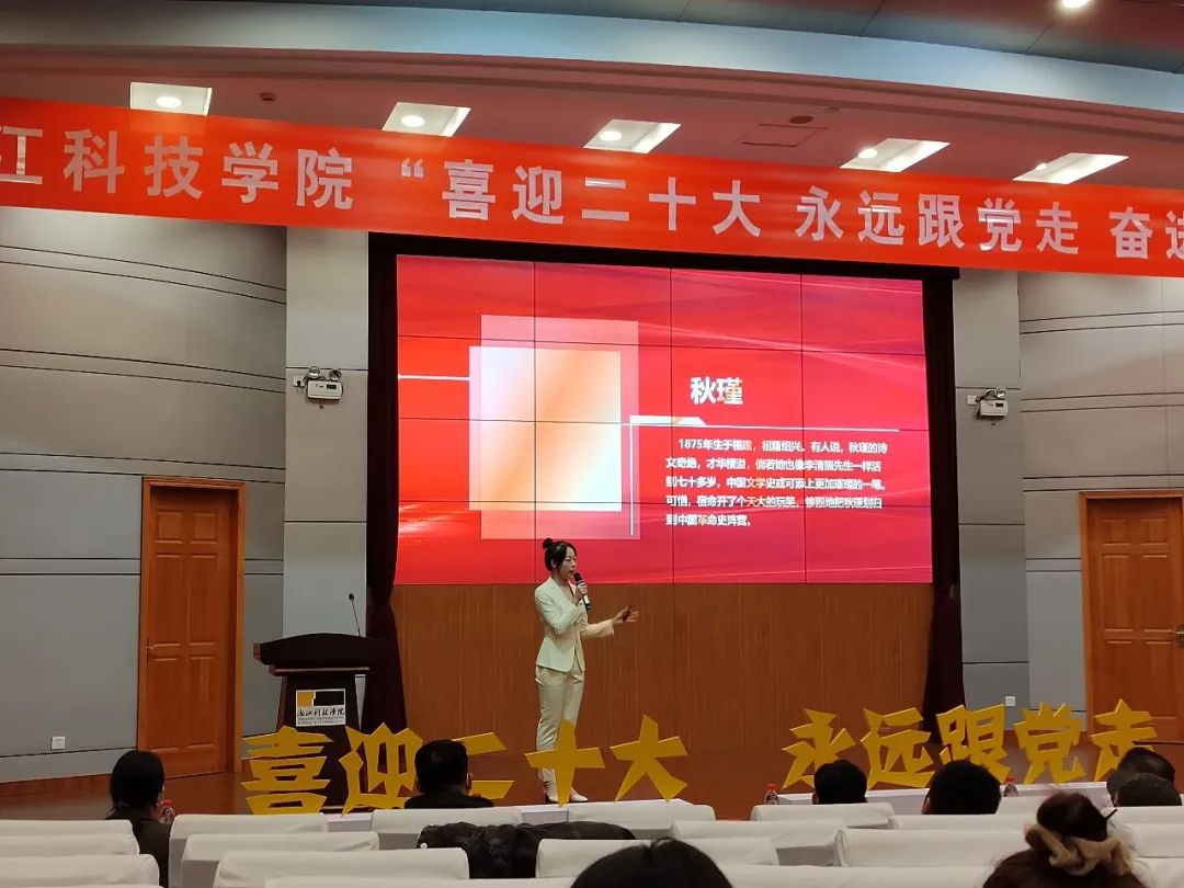 徐镒通过秋瑾的故事提出,作为大学生,我们要像秋瑾先生一样敢于奋斗、勇于突破,要始终严格要求自己,以认真负责的态度和积极饱满的热情,投入到学习工作中去,铭记历史,团结一致向前看,实现伟大复兴的中国梦。