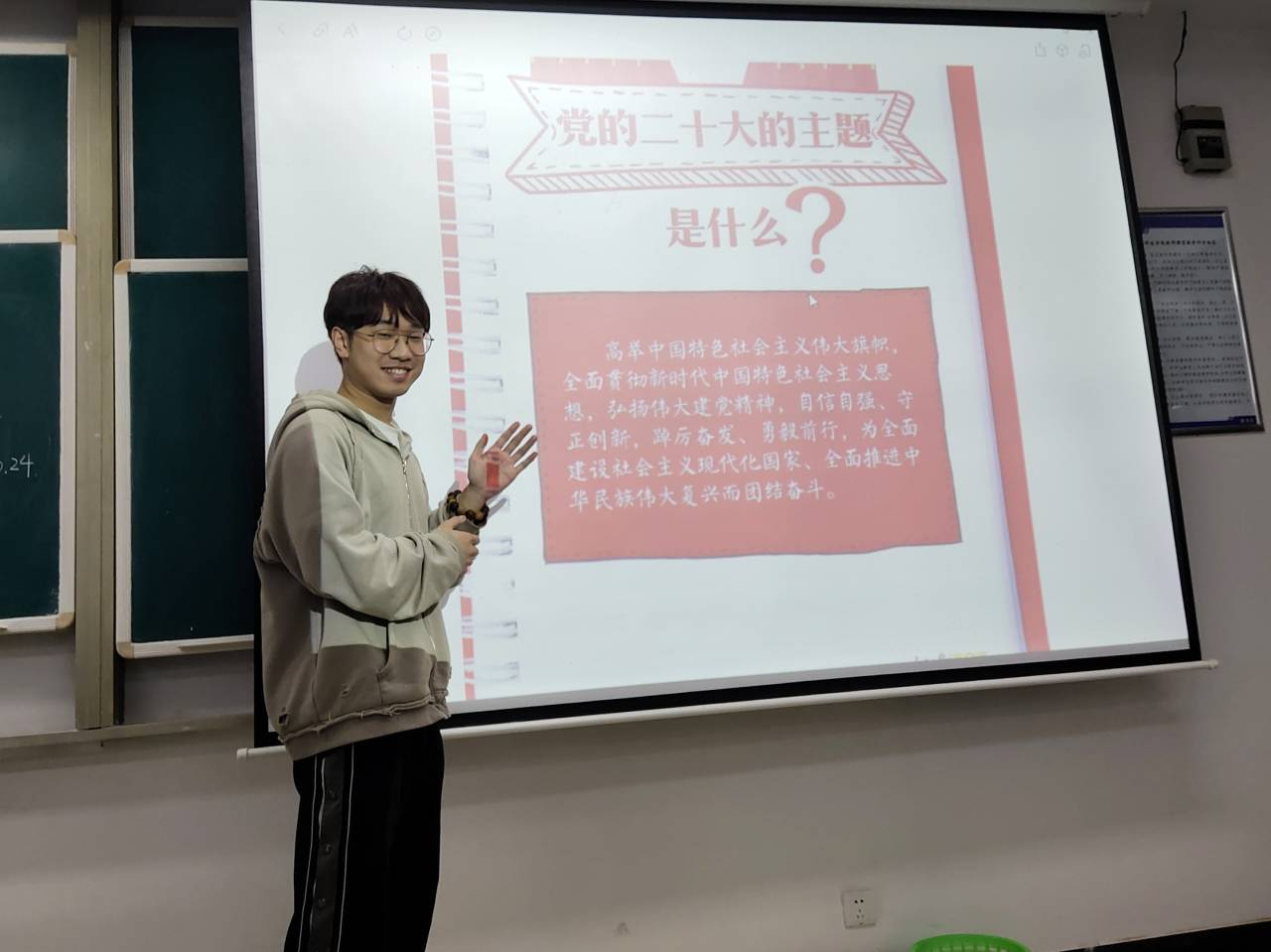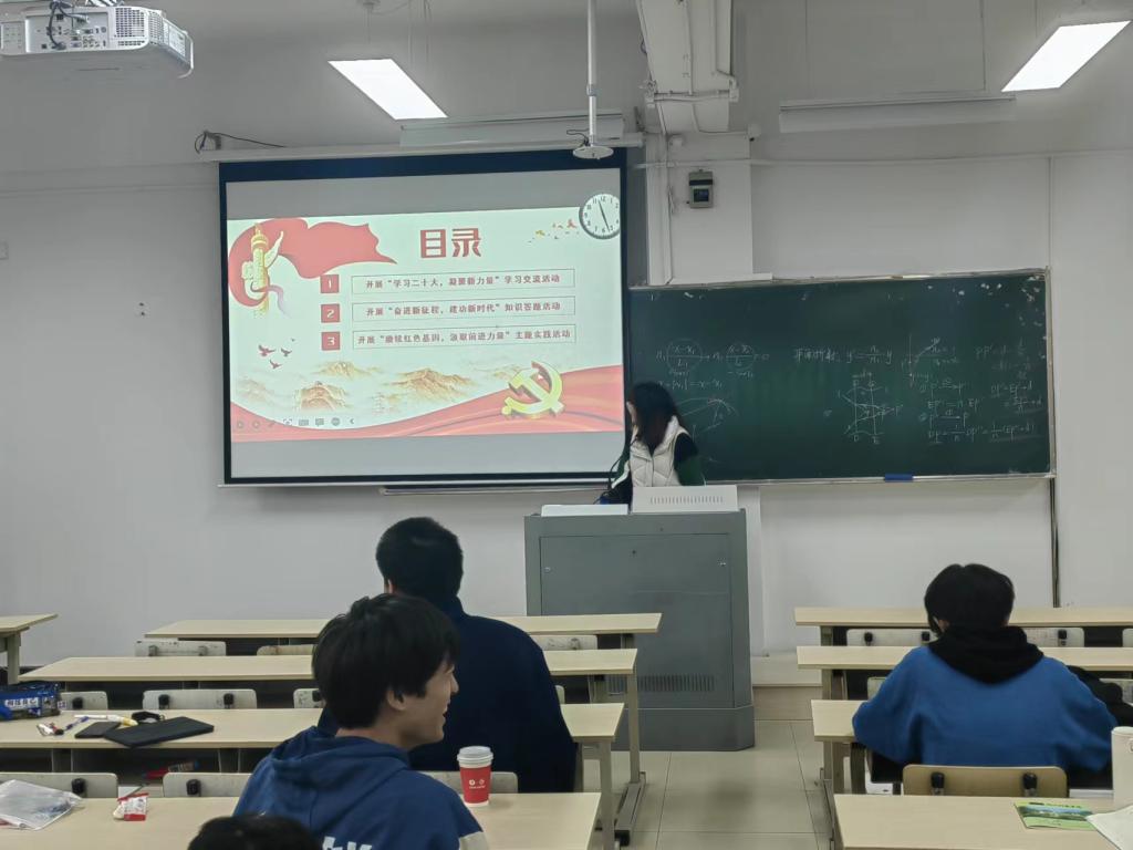 中法大数据212在教学区开展了以“学习二十大,永远跟党走,奋进新征程”为主题的团日活动,由团支书主持,同学们积极参与,也有同学上台分享。此次团日活动,同学们学习了二十大的主题,大会时间、地点、议程、主要内容等内容。
