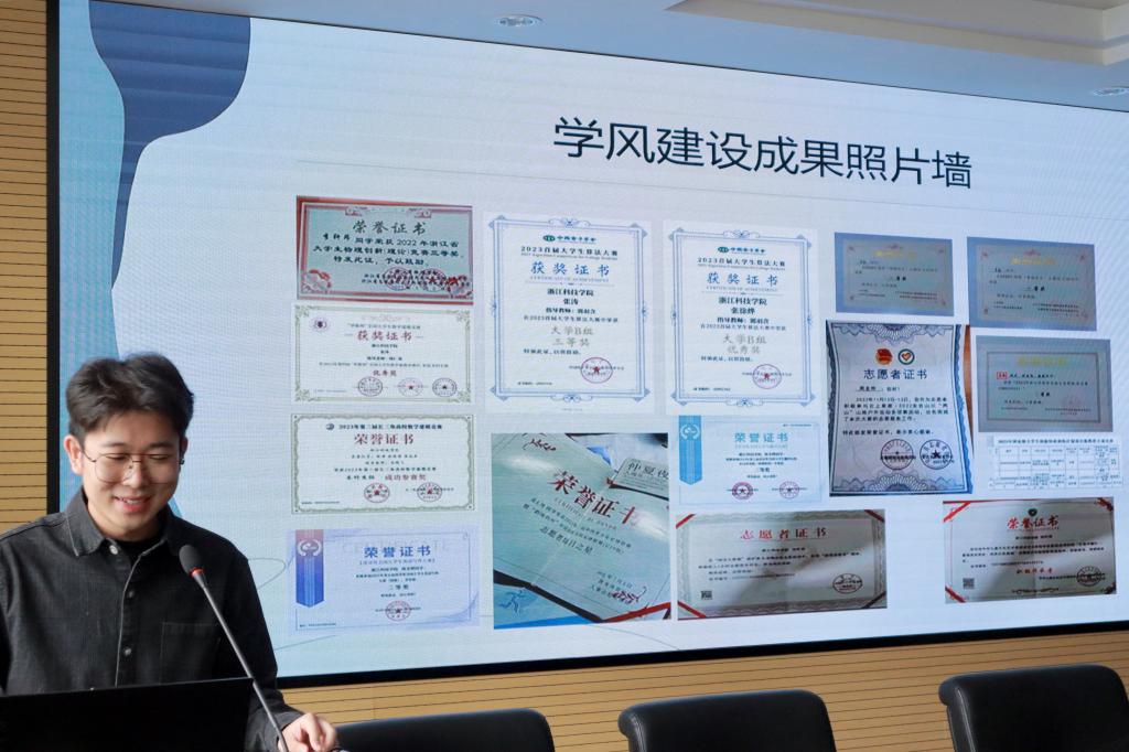 在评审现场,各班可谓“八仙过海,各显神通”,各班级立足专业特色,将学风建设细化为多元主题,围绕“思想引领学风、管理推进学风、活动融入学风”等多个方面充分展现各班级在学风建设方面的工作与成效。