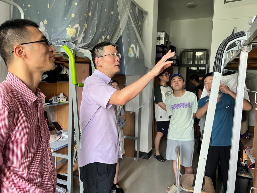 走访过程中,骆院长与同学们亲切交谈,详细询问留校原因、科研进展、生活保障及困难需求。“课题进展顺利吗?”“宿舍空调是否正常?”“一定要注意劳逸结合!”一句句关切的话语拉近了师生距离,他特别叮嘱同学们注意高温天气下的身体健康与实验安全,合理安排作息,遇到困难及时向辅导员和学院反映。