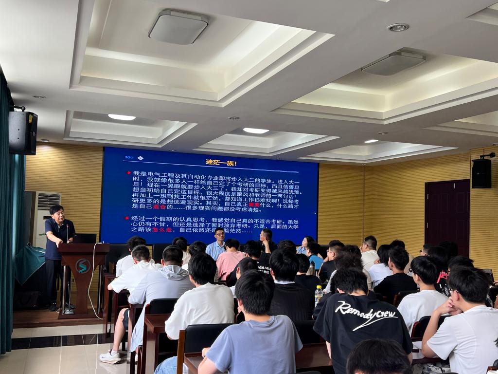 随后学工办主任蔡瑞康就毕业生安全教育、就业指导考核等相关事项进行了说明,提醒同学们在求职过程中注意人身财产安全,防范就业陷阱。教务办主任花彩霞则围绕毕业预审、毕业开题、实习报告等教学环节作了详细通知,帮助同学们清晰掌握毕业前各项流程要求。