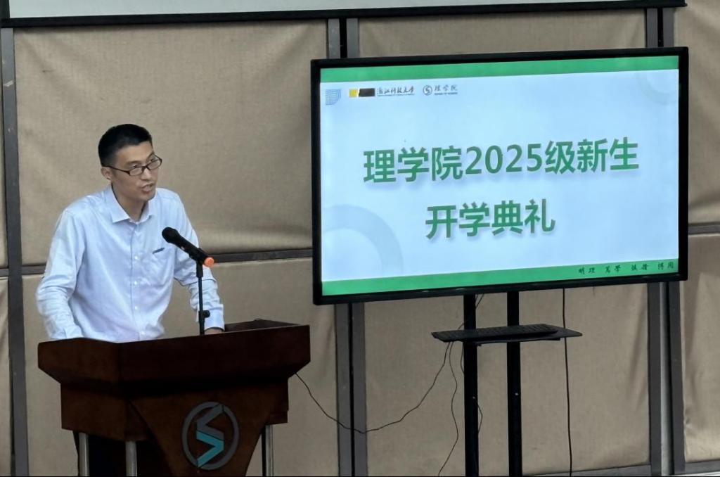 校党委副书记张日向在致辞中热烈欢迎新同学的到来,他指出,同学们恰逢学校冲刺博士点的关键时期,更身处人工智能重塑世界的浪潮中,希望同学们学会学习,要博专结合、筑牢根基;学会相处,从独行转为同行;学会规划,在主动探索中锚定未来,争做有理想、有本领、有担当的浙科青年。