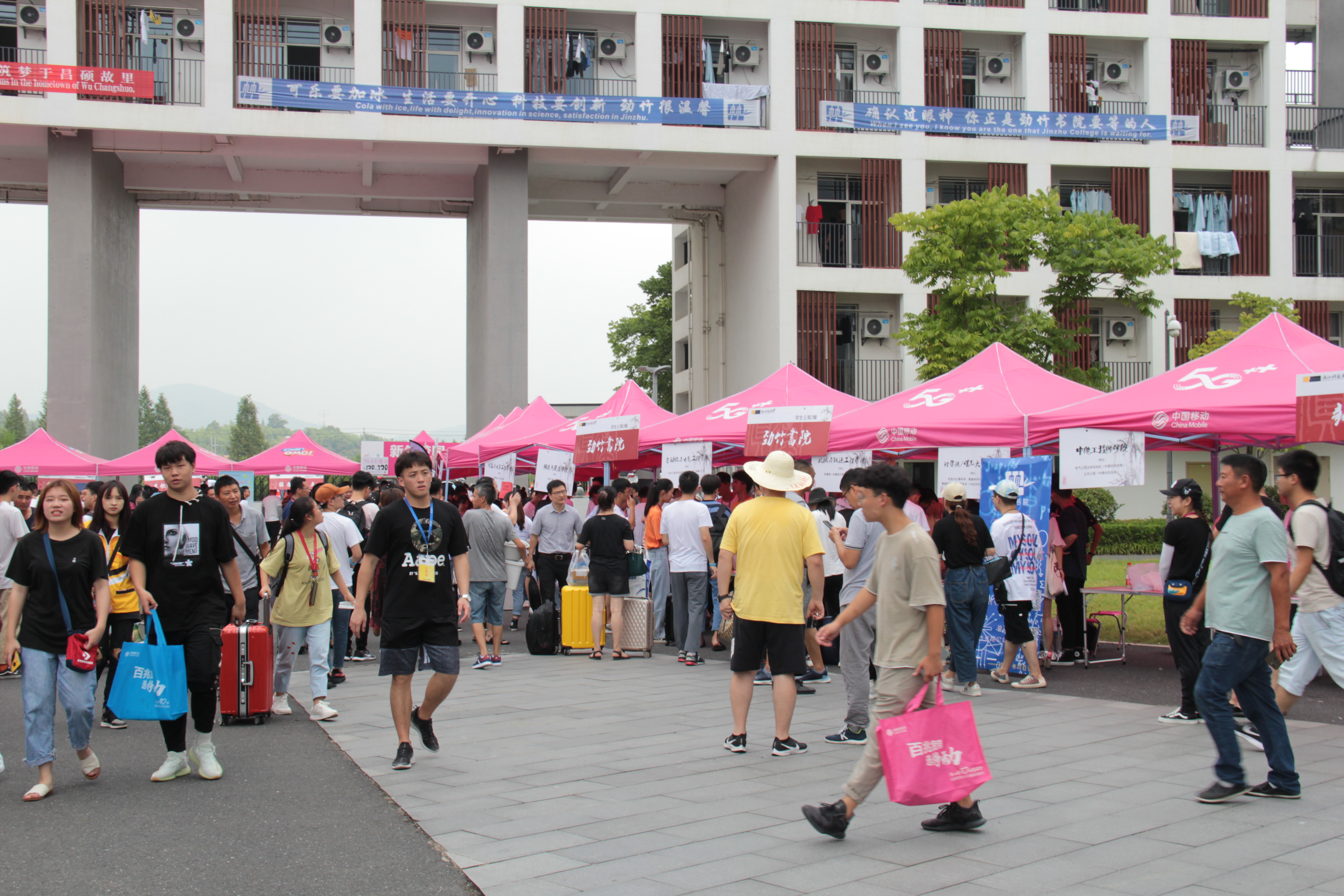 /大数据学院230名2019级新生陆陆续续抵达安吉校区,热心的志愿者们积极帮助新生们搬运行李,提供所需要的咨询和帮助。