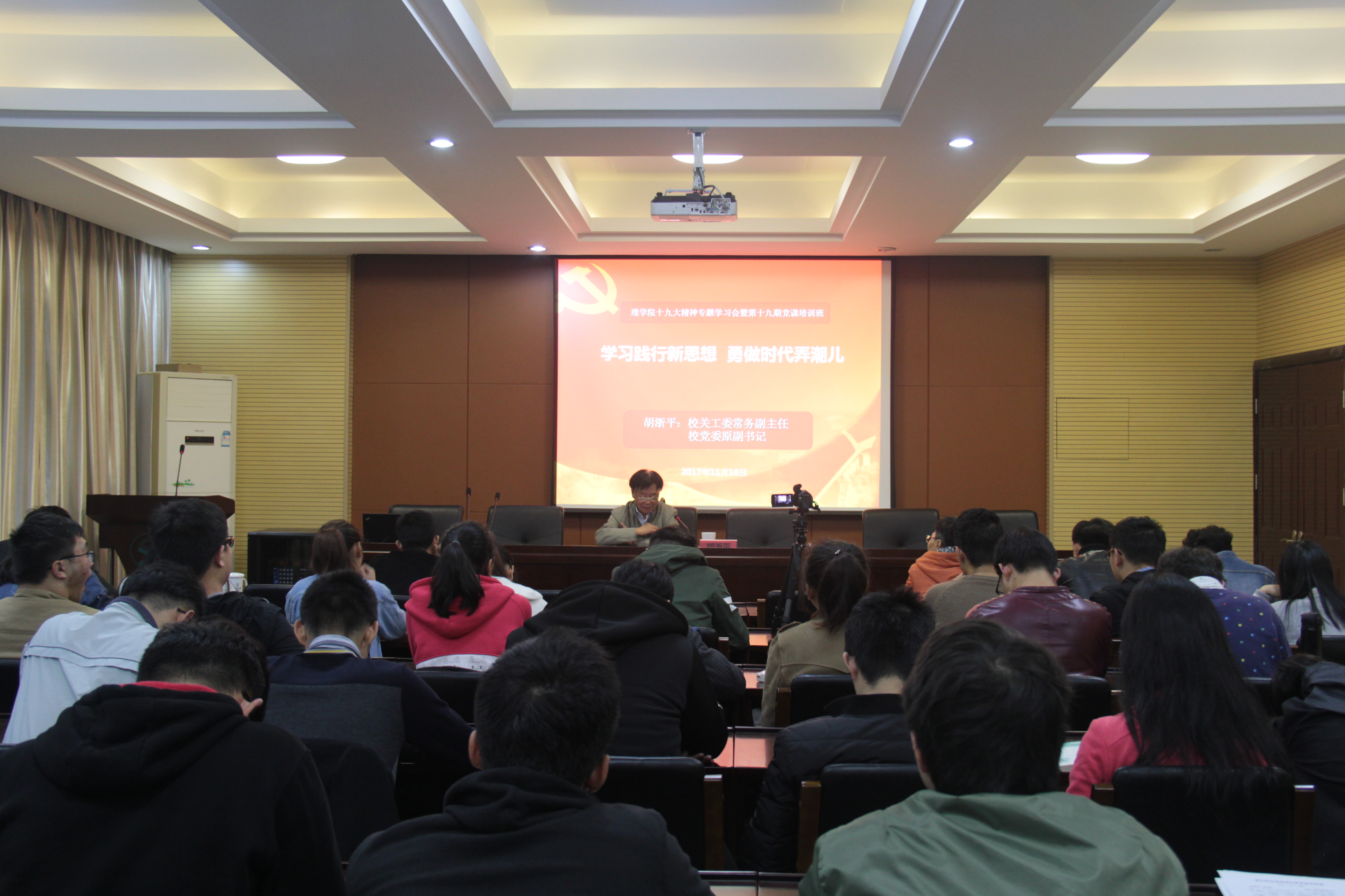 第十九期党校第二次党课举行,校关工委常务副主任、校党委原副书记胡浙平为同学们授课。av影片