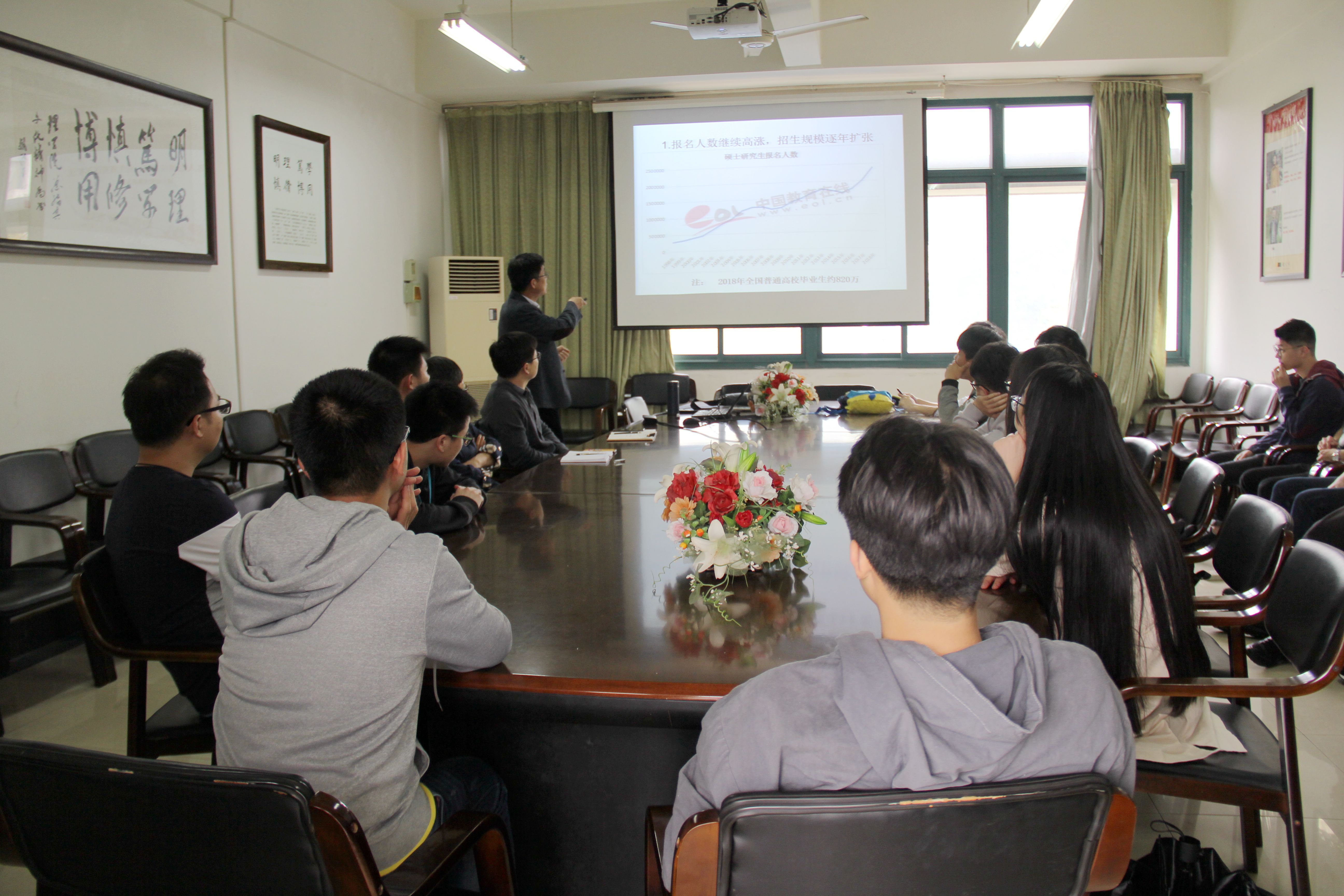 近年来在考研方面呈现出的趋势不容乐观,同学们要充分把握学院创造的有利条件,进一步认清自身优势,坚定考研信念和信心,不断养成良好的学习习惯,主动提高自身学习能力,抓住考研的机会通过自身努力改变命运。