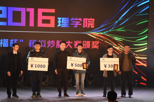 11级校友石泉斌(华福杯模拟炒股大赛赞助)和胡月老师还对华福杯模拟炒股大赛进行了颁奖。通过模拟实战感受一下股市的腥风血雨,希望同学们能再接再厉,塑造更好的自己。