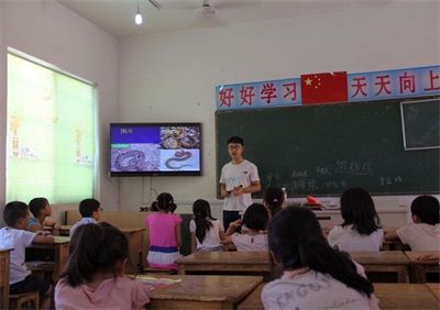 许多孩子们迫不及待地想要见到大哥哥、大姐姐们,早早的来到了学校。清晨8时,怀着激动地心情,队员们终于要开始给孩子们上课了!孩子们对此也是满怀热情,课堂上充满了孩子们的欢声笑语。在上课过程中,孩子们调皮的天性让课堂纪律难以维持。后来队员们强调,在上课的时候要尊重老师,举手发言,不能随便说话,下课,队员就是哥哥姐姐,可以一起玩耍。最后,孩子们懂得了这个道理,并与老师们之间也渐渐地产生了感情。
