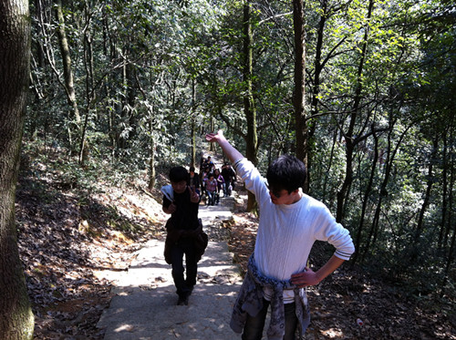 活动的路线为五云山,沿着整齐的台阶拾级而上,途中时而传来同学们爽朗的笑声和一句句嘹亮的红歌。毅行途中大家一丝不苟的捡起游客们丢在路旁的各种垃圾。在山顶上,策划本次活动的同学还精心准备了红歌传唱、猜成语、红色故事等趣味活动。