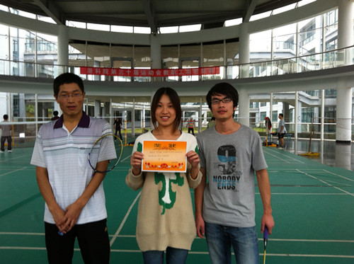 学生物理党支部本学期第一次活动在B区举行。此次活动的主题为“羽”乐在支部,内容为趣味羽毛球比赛,活动分为“单打比赛”,“趣味双打”,“掂球答题”三个环节。此活动不仅让大家在紧张的学习生活中得到放松,而且让大家充分体会团队共同努力的乐趣,更是对大家“一心两用”和知识面的考验。