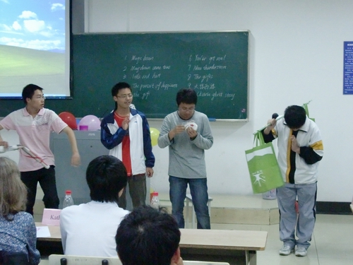 决赛于5月16日晚在A2-122举行。为了得到更为专业的点评,我们邀请了四名外教Wolfwang,Anner,Hendnish,Kathy及叶楠,严智鹏担任评委。评委老师对各组的表演做了点评,并指出表演不应只注重语言,表情和肢体的动作同等重要。最后评委们给获奖的小组颁发了奖品和证书,并拍照留念。av影片