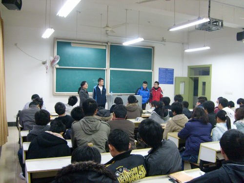 在互动环节,09级新生就自己在大学期间学习、工作、期末考试、考研等方面的困惑,及学习之外的如参加社团、上网、谈恋爱等方面的问题向学长们提问,现场气氛热烈,三位学长耐心地做了解答。