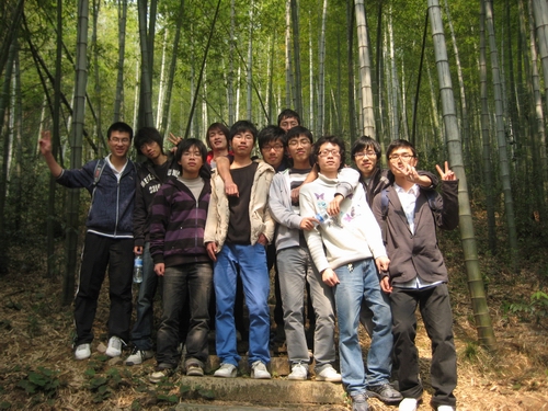 渴了,大家喝自带的水;累了,大家适当休息。途中大家开开玩笑,一路笑声不断。