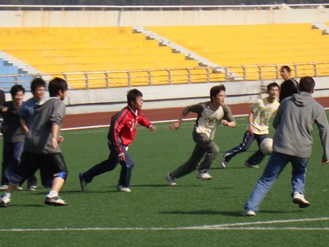 今年的春天似乎来得特别让人期待,从开学到现在好不容易得以和阳光叙叙旧。班里的同学都安奈不住了,野性驱使我们不能再安分一会会。经一番讨论决定全班集体出动——踢球去。我们就是这样一群孩子,要活动大家一起,要努力大家一起,谁也不可以缺勤。球场上,我们抛开烦恼,抛开压力,不顾一切的飞奔向球,不管球技如何没人会介意的,累了就直接躺倒在草地上。进球了我们欢呼,错过好球我们依旧狂叫,你也许不相信都是群大三的人了怎么还玩得那么疯。没办法,只有和同学们一起我们才那么放荡那么无忌,踢完球一个个哇哇叫累。