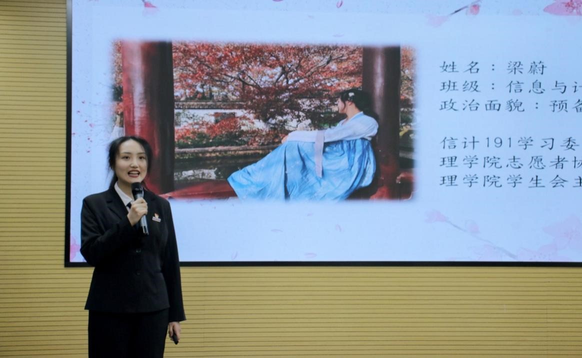 随后,璀璨之星们开始个人风采展示。信息与计算科学191班的班长陈奕翀从学习生活和班团工作出发,分享她的带领班级斩获各项荣誉的故事。数据科学与大数据技术(中法班)191班陆文婷创立了多项创新项目和发明专利,她讲述了她的科研成果和竞赛之旅。信息与计算科学191班梁蔚始终牢记党的教诲,用实际行动诠释了责任与担当,她分享了她与各类志愿活动、团学工作的故事。信息与计算科学191班史琦,她的思政微课发布在各大官方媒体上,且勇攀各科高峰,囊括学业、社会实践、团学工作、科技竞赛各类奖项。数据科学与大数据技术191班林欣颖,踏实学习,勤恳工作,获多项竞赛奖项,积极参与各种志愿活动,并通过av影片