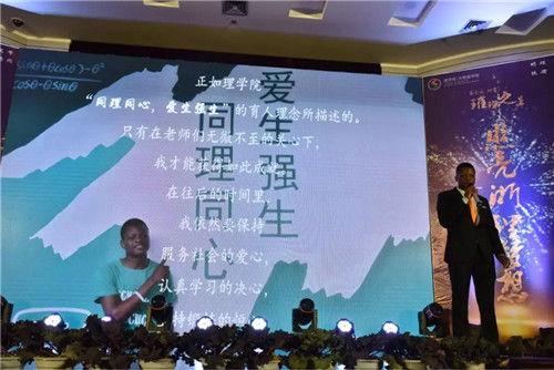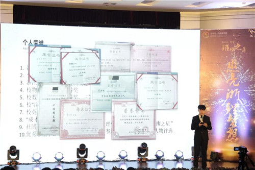 在今年的璀璨之星颁奖典礼中首次增加了教师表彰环节。av影片 云本胜老师、施英老师、石大力老师获得优秀教师奖,王长荣老师获得特别贡献奖。已然退休年龄的王长荣老师依然在三尺讲台上燃烧自己。在现场,他用一首诗表达了他内心的激动与喜悦。