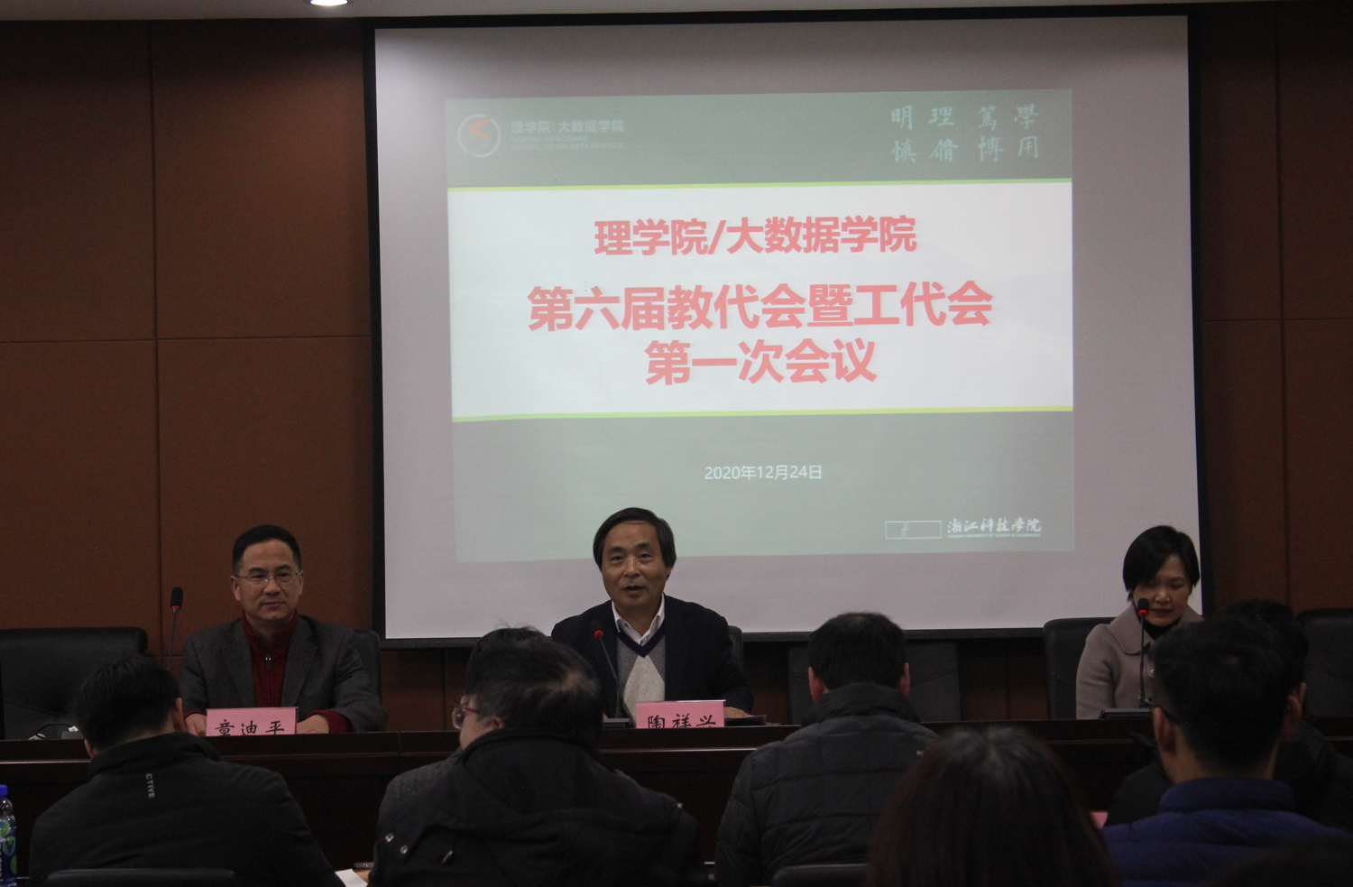 1224日,av影片 第六届“双代会”第一次会议在闻理园A4-216会议室召开,校党委委员、院长陶祥兴,院党委副书记(主持工作)张掬婴,院党委委员副院长钱亚冠、徐弼军,党委委员院长助理、第五届分工会主席章迪平以及全体双代会代表、列席代表参加了会议。