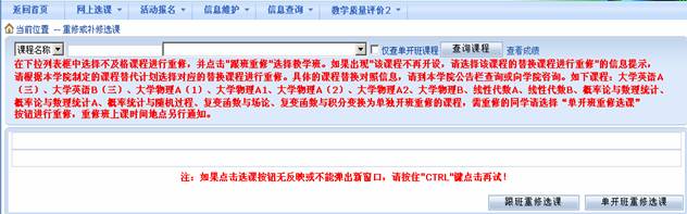 1、进入“网上选课”的“重修或补修选课”中 :