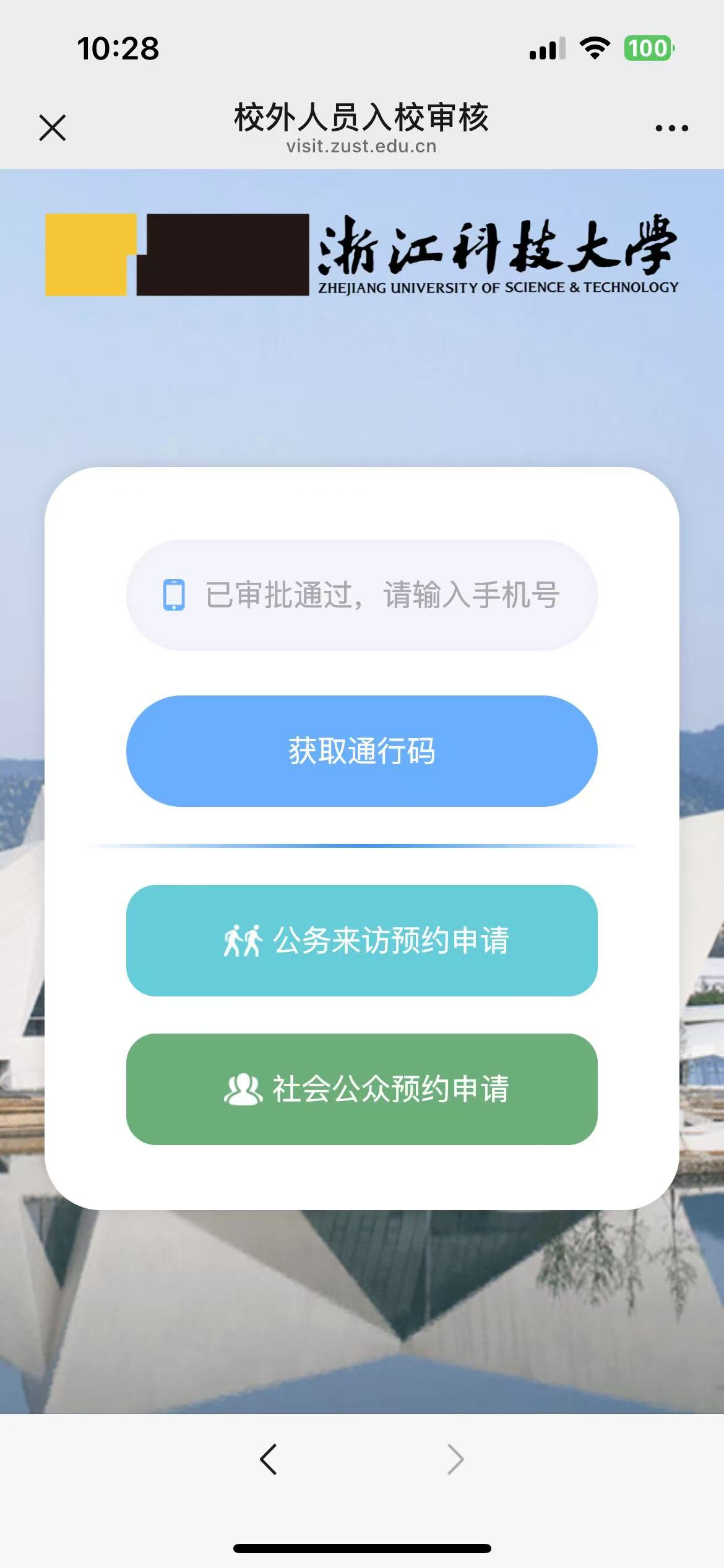 校外人员如果想进入学校参观或者看望老师,可以点击主页中的“返校预约”,登录或者填写返校信息,等审核通过就可以进校啦!