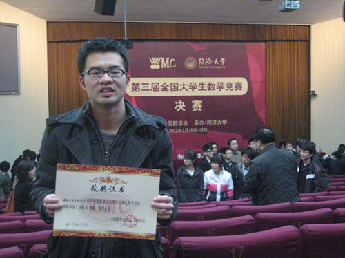 近三年,我校共有两名学生参加过全国大学生数学竞赛决赛,陈中师是今年浙江省入围决赛的10名同学之一,也是我校唯一一位。