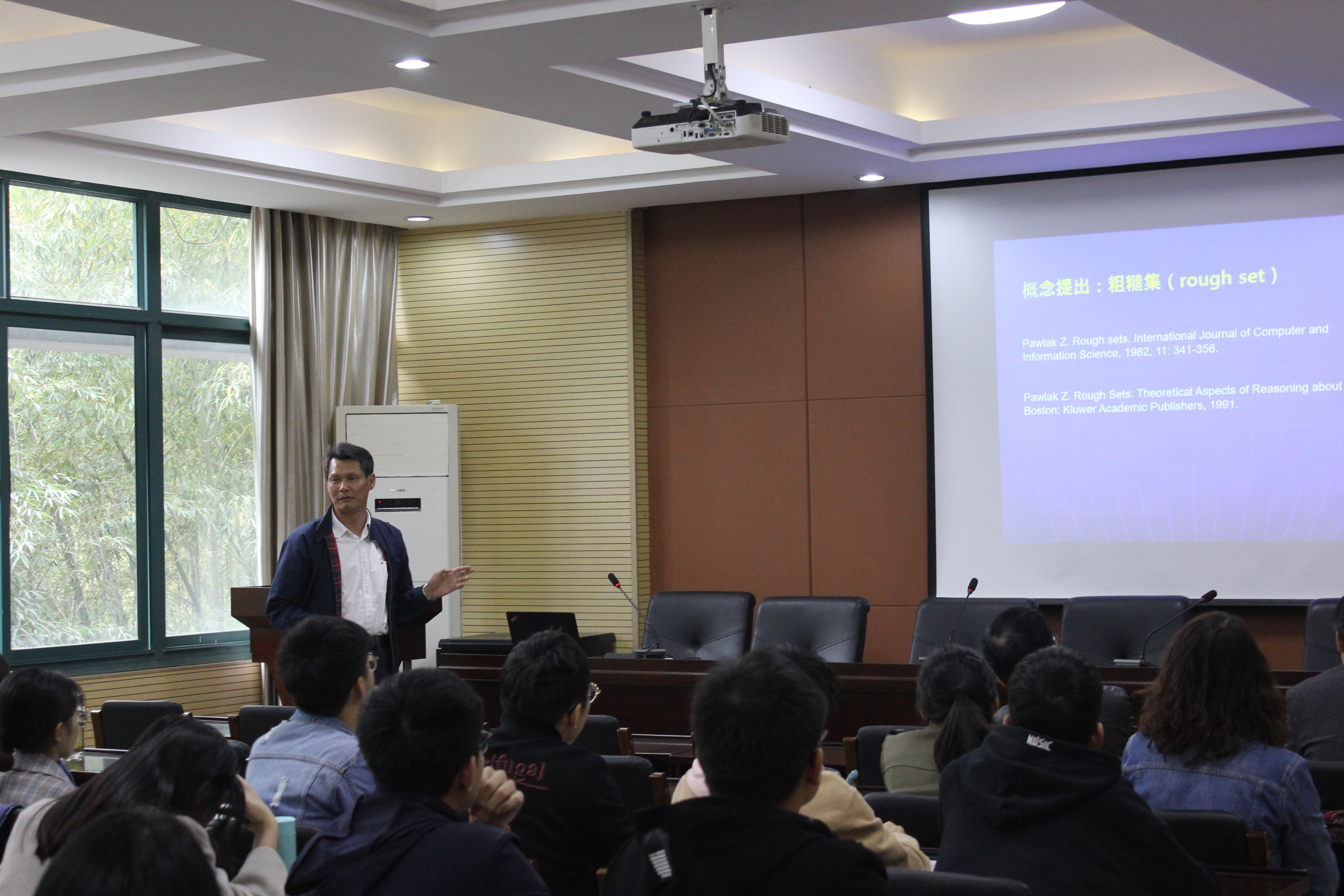 吴伟志教授首先从粗糙集理论研究与应用发展的核心基础-由近似空间导出的一对下近似算子与上近似算子出发,介绍了基于二元关系的各种经典粗糙近似算子、粗糙模糊近似算子和模糊粗糙近似算子的构造性定义,总结与分析了这些近似算子的公理化刻画研究的进展。