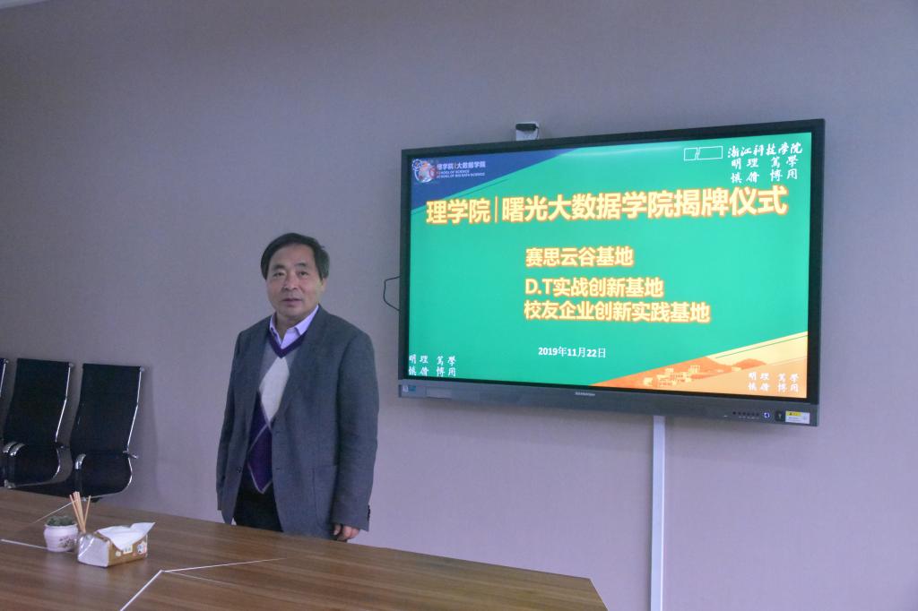 科创基地赛思云谷(D.T实战创新基地、校友企业创新实践基地)揭牌仪式在A3-229举行。学校党委委员、学院党委书记/院长陶祥兴、副院长钱亚冠、院党委委员章迪平、指导老师汪文彬、学工办主任石大力及实践基地所有学生参加揭牌仪式。仪式由学院党委副书记王宝明主持。