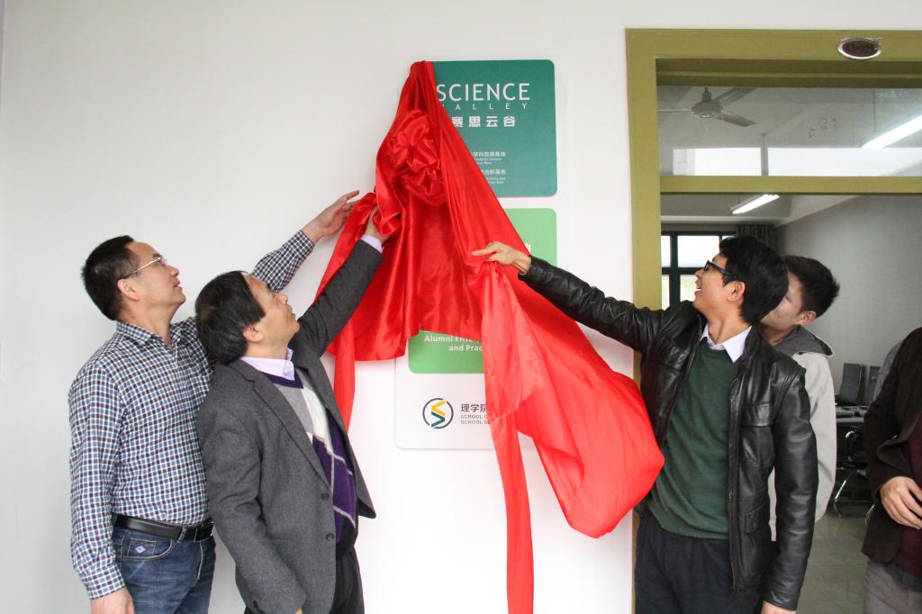 随后,陶祥兴和钱亚冠共同为赛思云谷基地、D.T实战创新基地、校友企业创新实践基地揭牌。