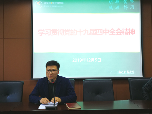 党委在A4-216举行教职工集中政治理论学习,学习宣传贯彻党的十九届四中全会精神。学院党委副书记王宝明主持会议并作了领学。