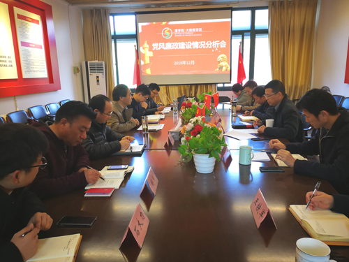 召开2019年党风廉政建设情况分析会。会议由校党委委员、学院党委书记/院长陶祥兴主持,校纪委委员王勇平受邀参加会议,班子成员以及系、部等内设机构负责人参加会议。