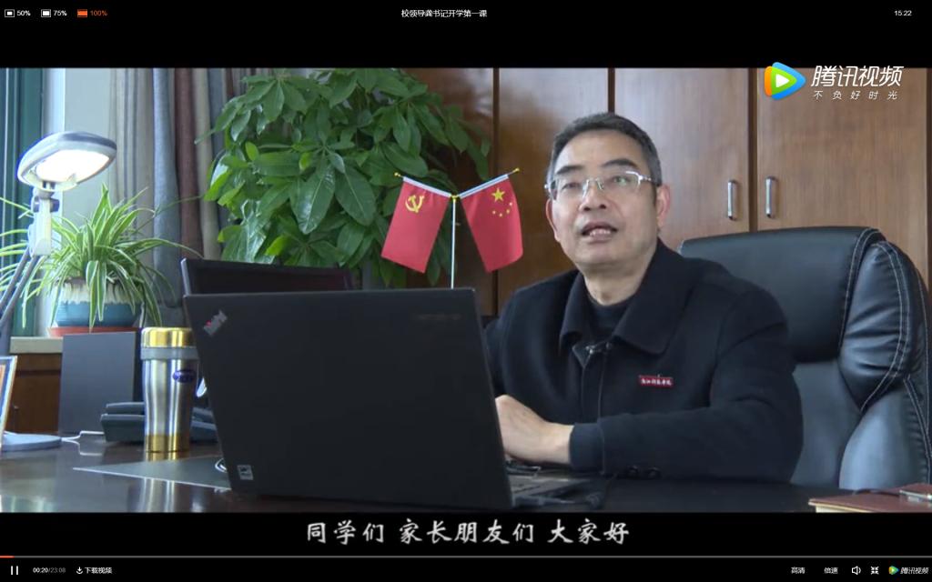 在近半小时的时间里,龚书记讲述了疫情防控期间学校做出的努力,希望同学们停下脚步沉下思考。他以近期很火的公益短片《大自然在说话》勉励大家敬畏生命与自然;以疫情期间“中国速度、中国效率、中国力量”的精彩展现来敬礼国家与人民;让同学们珍惜与父母相处的这段时光,静守家庭与亲情;也希望作为在校大学生珍惜光阴、努力学习,为祖国担付起自己的责任与使命。