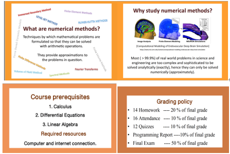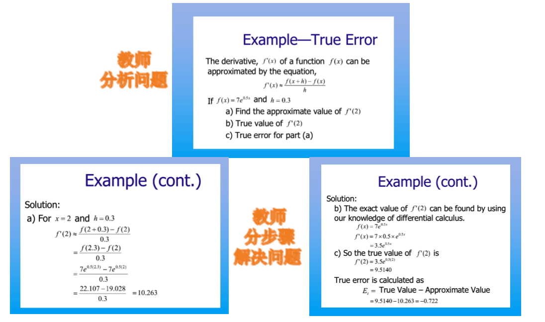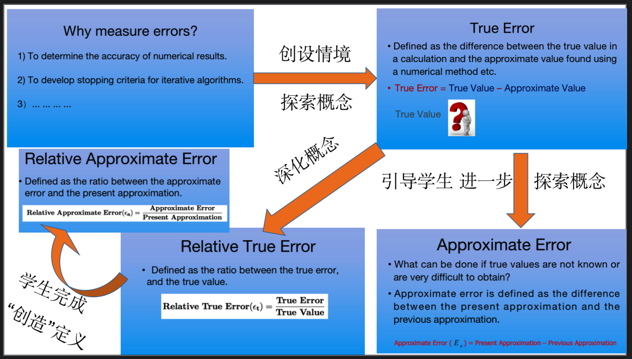 数学系组织的年终教学沙龙活动中,朱婉珍教授给我们青年教师作了题为“卓越教学始于教学设计”的教学讲座,使我受益匪浅。切实理会了上好一门课有“三要”:一要树立一种正确的教学观,立志做一名好教师;二要精心设计每一次课,全身心投入到教学实施;三要建立一种良好的师生关系,有效落实教学目标。线上教学亦是如此。以下是《数值计算方法(英)》第一周课程的在线教学的教学设计。