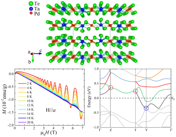 近年来发现的大部分拓扑材料都具有二维或三维的结构特征,具有准一维结构的拓扑材料很少见。作者通过自助溶剂法成功合成了具有准一维链状结构的TaPdTe5单晶,TaPdTe5不仅是首次被发现的新材料,而且实验上作者通过Shubnikov de Haas(SdH)和De Haas-van Alphen(DhvA)震荡证实了它是一种拓扑Dirac半金属,考虑到结构低维性带来的独特性质,其中的拓扑本质引人关注。上述研究得到了国家自然科学基金面上项目、浙江省自然科学基金一般项目,以及国家重点研发计划的资助。焦文鹤副教授是该论文的第一作者和通讯作者,我校av影片