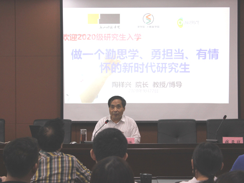 陶祥兴以“做一个勤思学、勇担当、有情怀的新时代研究生”为题给新生上了学院第一课。他指出,研究生在学习教育期间,学习研究是主业,要按时完成各个教学环节的任务;要积极参加科技活动,恪守学术道德,成为优良学风的榜样;要有坚定的政治信仰和过硬的政治素质,成为学院特色品牌建设的践行者。