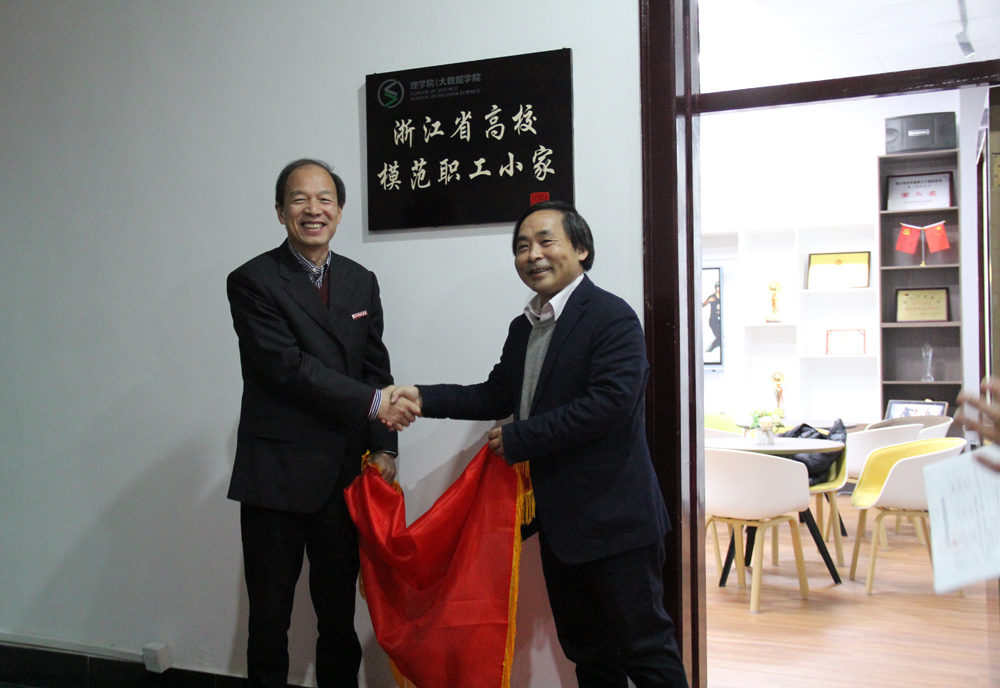 “浙江省高校模范职工小家”正式揭牌。校党委副书记周加敏、校党委委员/学院院长陶祥兴、学院党委副书记(主持工作)张掬婴、学院党委委员/分工会主席章迪平、学院党委委员房启全、办公室主任王铁军和师生代表出席揭牌仪式。
