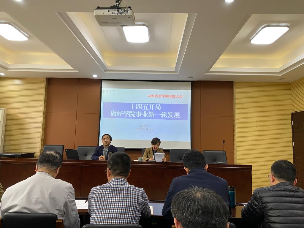 会议要求,全体教职工要把学习贯彻习近平总书记重要讲话和学校会议精神落实到学院“十四五”规划上来,紧盯国家战略、社会需求、科技前沿和行业变化,高质量高标准完成学院各项工作。