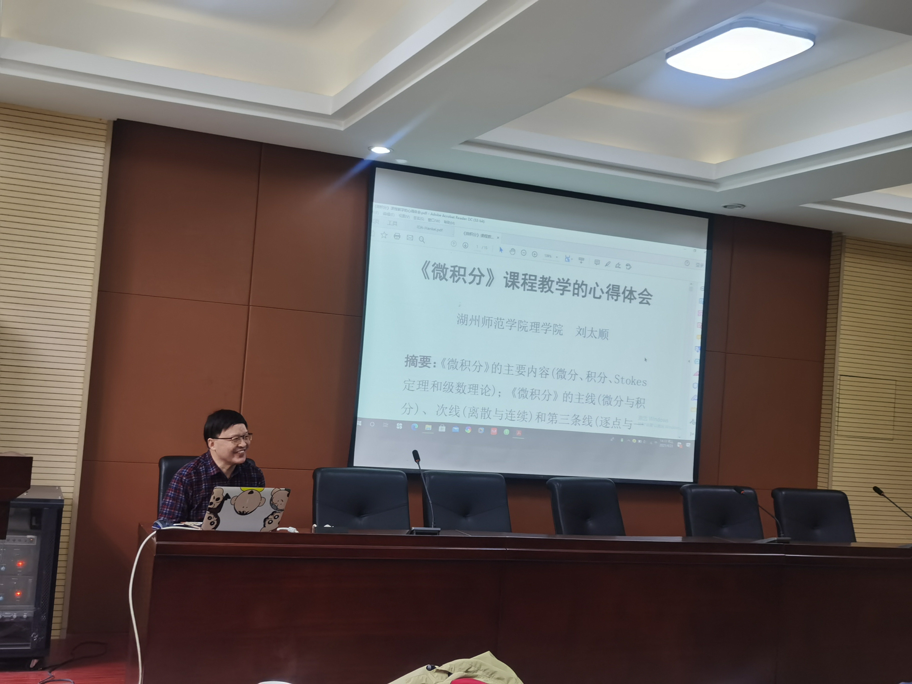 和山数学论坛,做了题为“《微积分》课程教学的心得体会”的精彩学术报告。报告由院长陶祥兴教授主持,数学系和大数据系部分老师、研究生共同聆听了报告。
