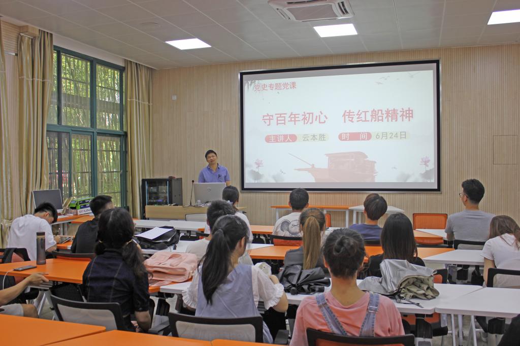 党委委员、副院长云本胜在A4-116为学院本科生第三党支部的党员上专题党课《守百年初心 传红船精神》。