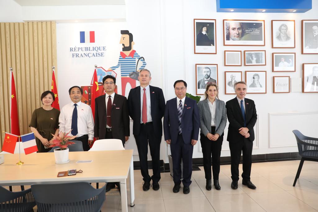 ,交流中法合作专业、参观中法文化走廊和实验室,校长赵东福、副校长单胜道、国际处等相关职能部门负责人陪同,学院党政班子接待了代表团一行。