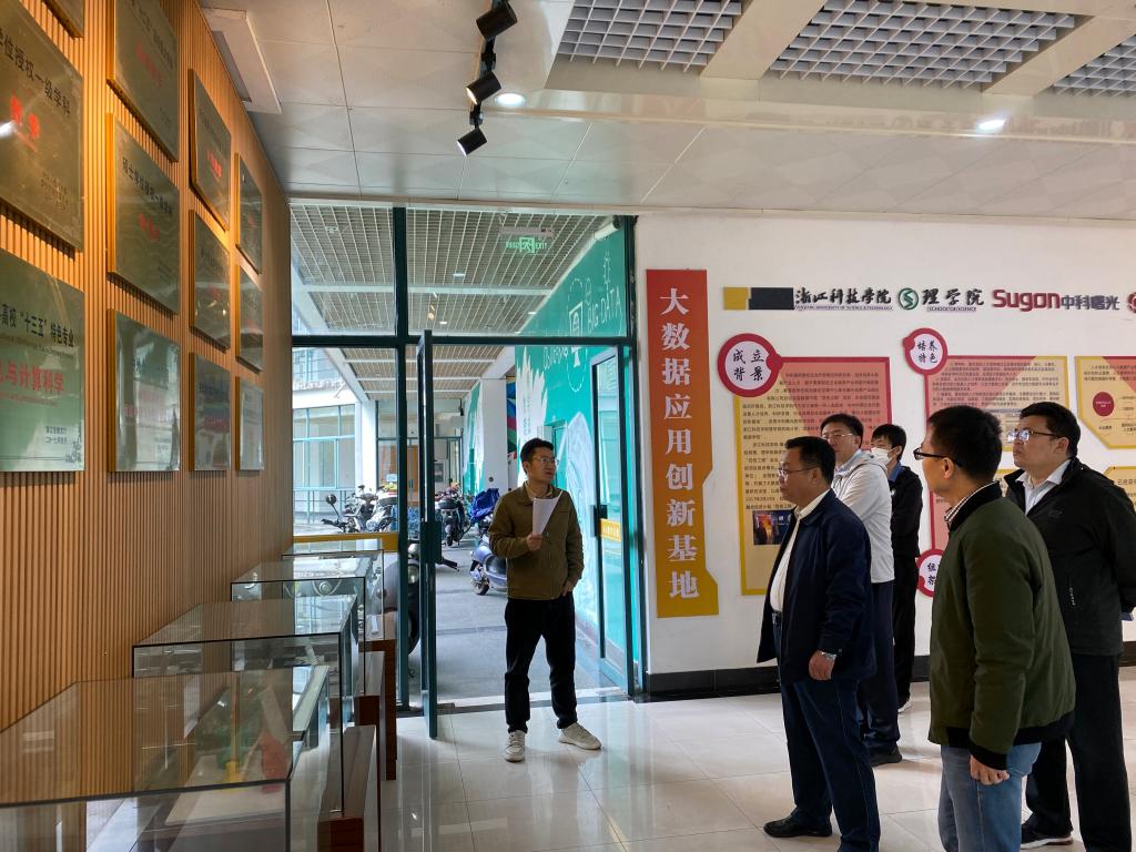 会前,办公室相关同志陪同来宾参观了学院文化走廊、数据可视化展示厅。(院办:王铁军)