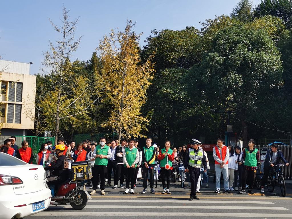 党委组织师生党员开展校园“最美人墙”交通疏导志愿活动。