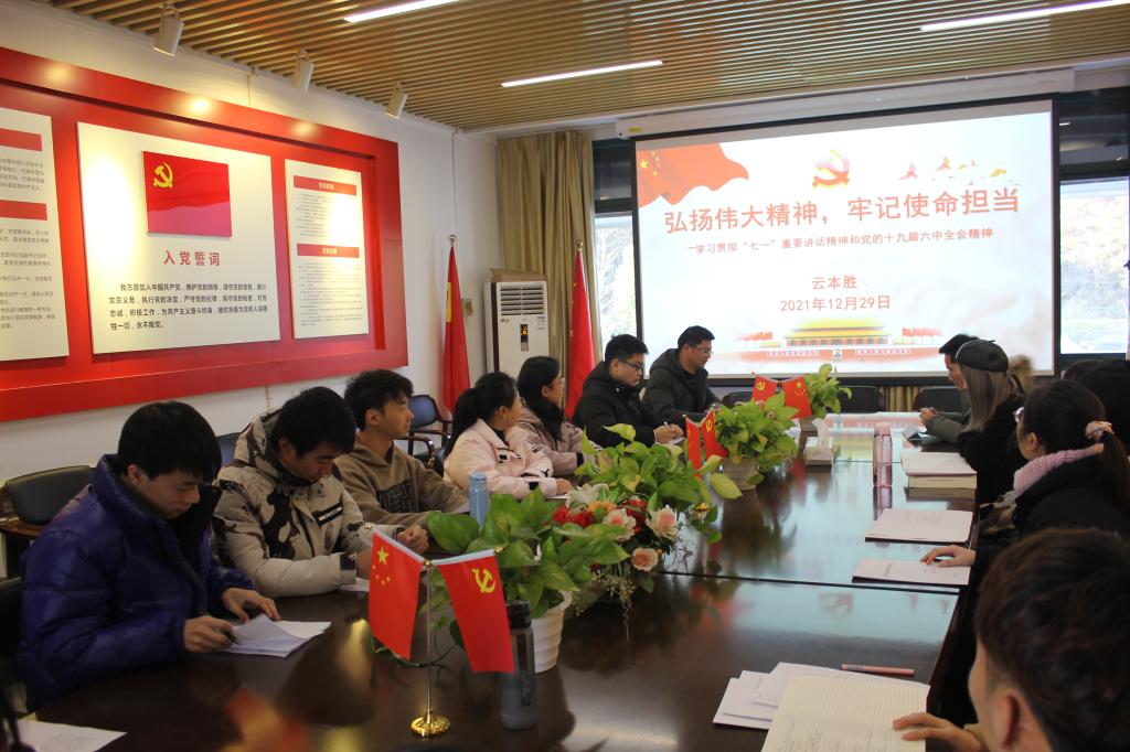 研究生第三党支部组织主题党日活动,学院副院长云本胜以《弘扬伟大精神,牢记使命担当》为题为大家上党课。