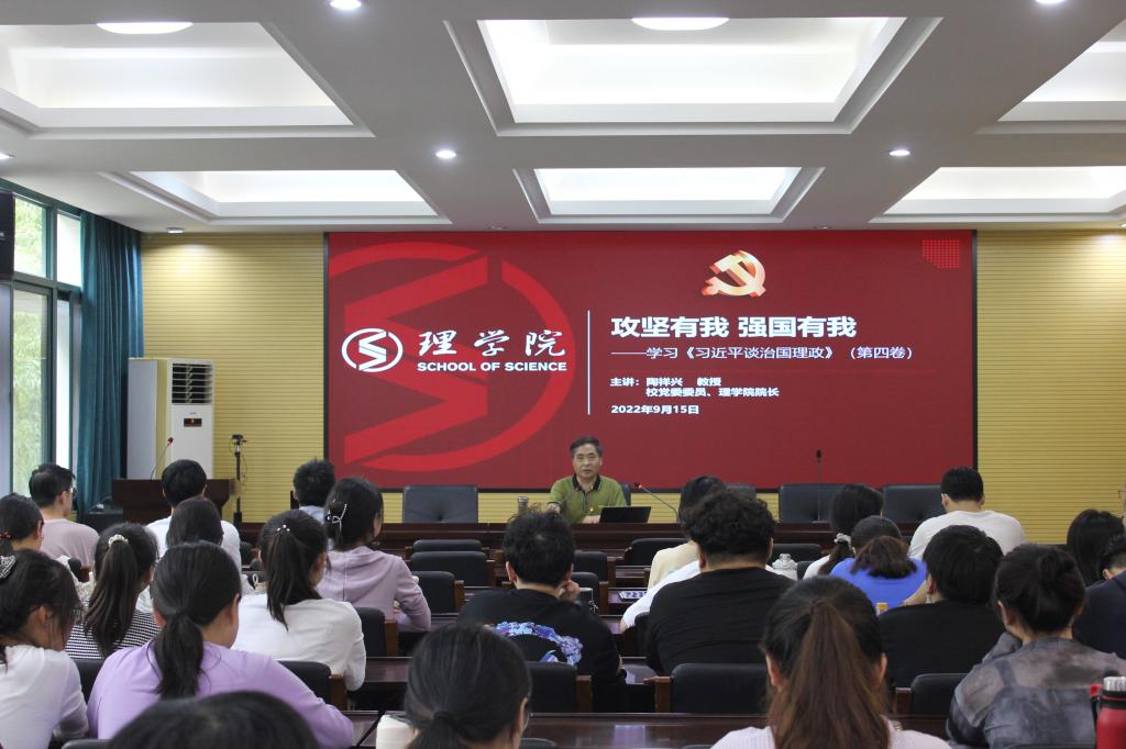 院长陶祥兴以“强国有我、攻坚有我”为题,为学院2022级研究生作学习《习近平谈治国理政》第四卷专题党课。