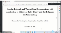 大会26场学术报告研讨和交流了调和分析与应用调和分析的最新研究成果和前沿进展,主要包括Dunkl算子、Yamabe型方程、极大函数、神经网络、相位恢复、先验信息信号与图像重构、Hardy空间小波刻画、Calderon交换子、拟微分算子加权估计等主题。av影片