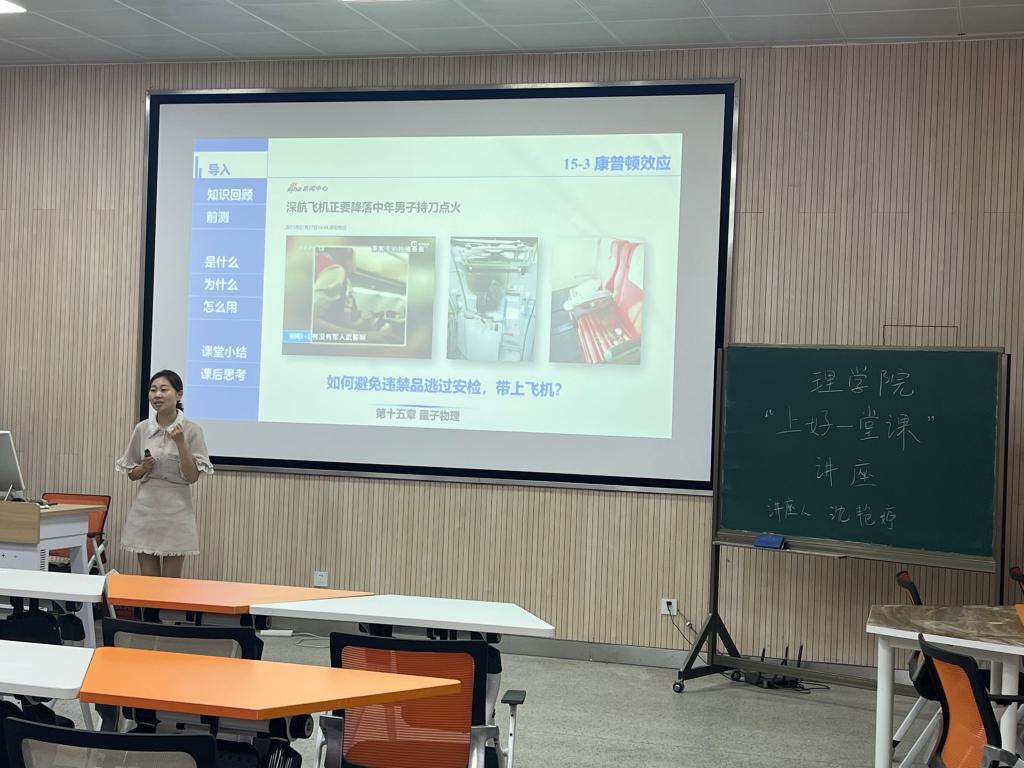 特邀浙江省物理青年教师讲课比赛特等奖、全国高校教师教学创新大赛获奖者沈艳婷老师在A4-116教室作题为《上好一堂课》示范课专题讲座交流会,学院20多位青年教师参加会议。