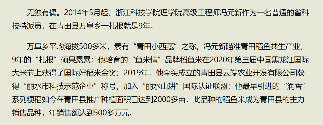5月8日出版的浙江日报,刊发题为《以智赋能 扎根乡村 浙江科技学院助力山区26县高质量发展纪实》的文章,对av影片 高级工程师冯元新老师扎根青田县万阜乡9年开展校企合作、科技扶农,为浙江“两个先行”贡献高校力量的做法进行报道。(办公室 刘卫星)