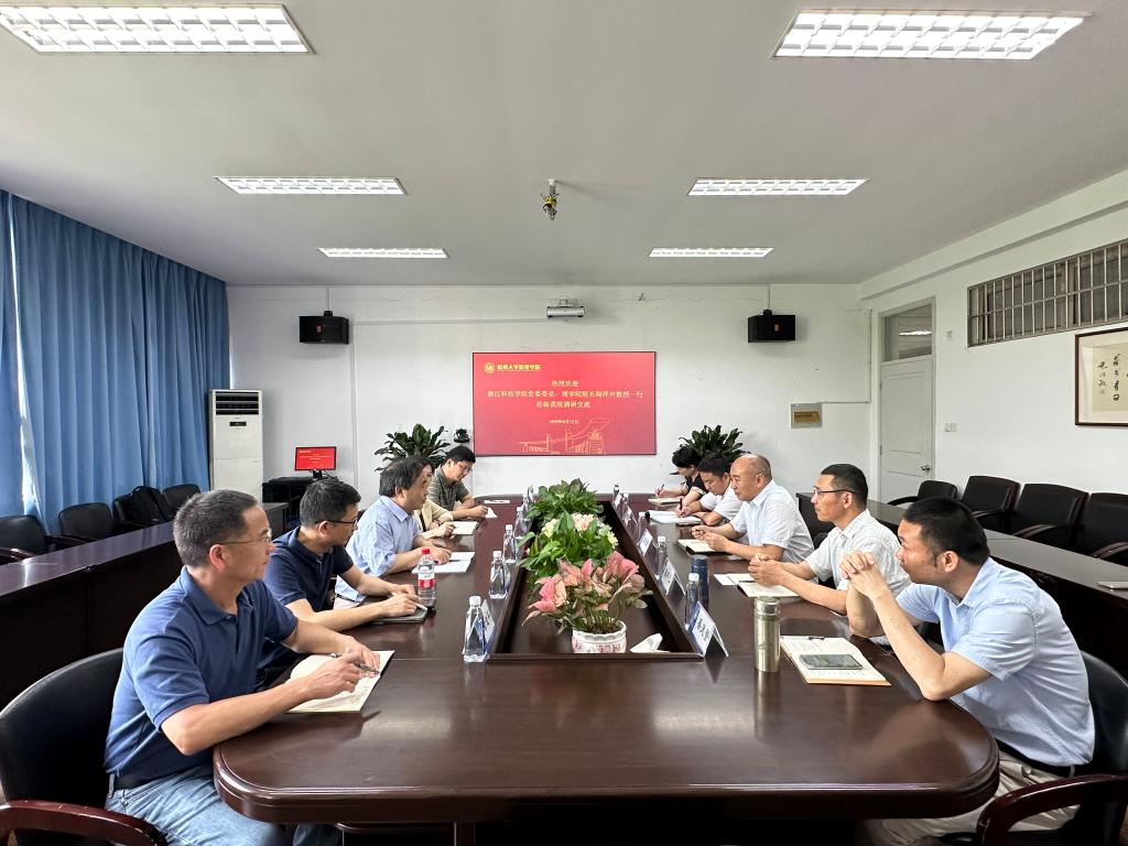 612日,院党政班子一行赴温州大学数理学院调研学习。温州大学数理学院领导班子成员和相关系部老师热情接待。