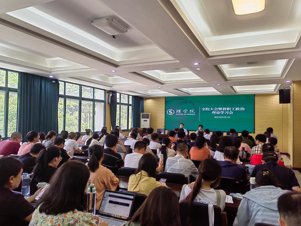 在A4-216会议室召开新学期全院大会暨教职工政治理论学习会。学院党政班子、全院教职工参加会议,会议由学院党委书记张掬婴同志主持。