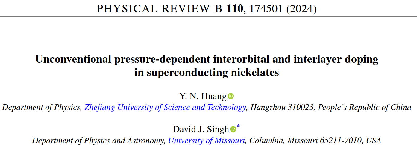 应用物理系量子关联物质研究团队在国际学术期刊《Physical Review B》 (IF=3.71,中科院二区) 期刊上发表了题为" Unconventional pressure-dependent interorbital and interlayer doping in superconducting nickelates "的研究论文。浙江科技大学为第一单位,应用物理系副教授黄衣娜为第一作者,密苏里大学物理与天文学系David J. Singh教授为论文通讯作者,文章致谢了浙江大学物av影片
