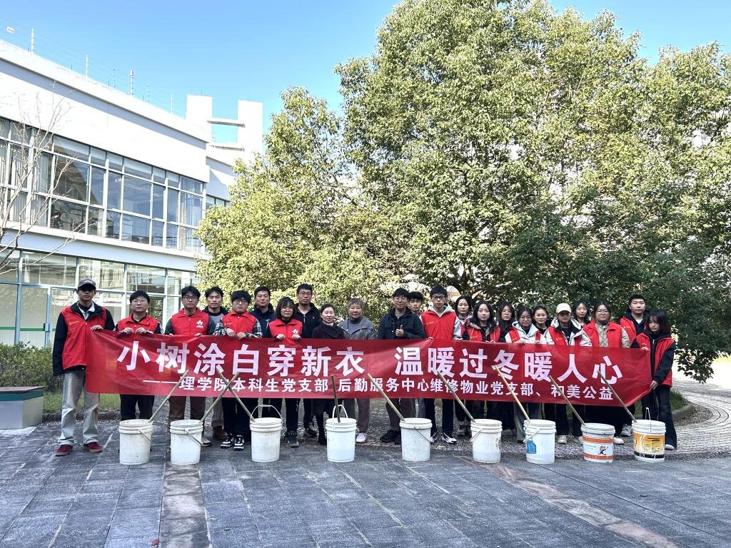 本科生党支部联合后勤服务中心维修物业党支部,组织师生近30人开展“小树涂白穿新衣 温暖过冬暖人心”主题党日活动,为闻理园的树木添加“新衣”,以增强树木抗寒防虫能力,确保树木温暖过寒冬。